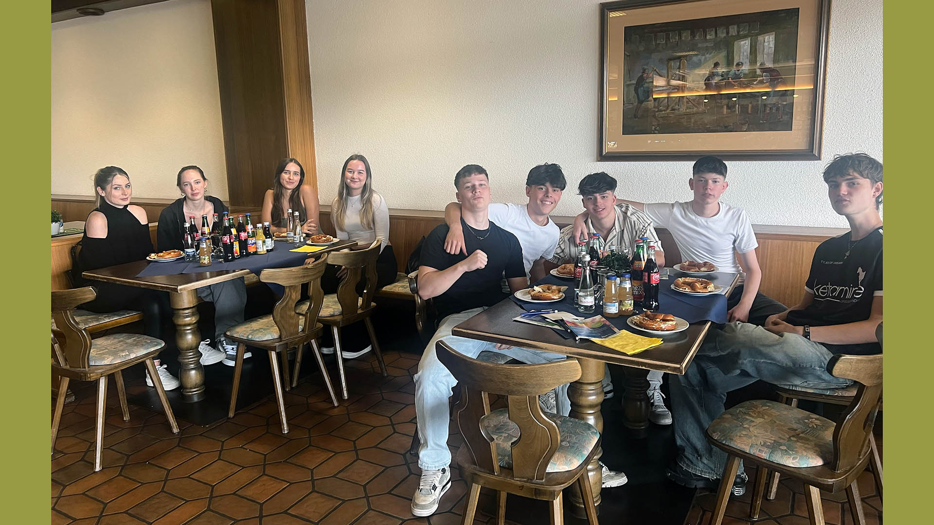 Nach diesem informativen Teil ging es in die Mensa, wo ein kleiner Snack wartete. Es gab eine Auswahl an Getränken und Butterbrezeln zur Stärkung.
