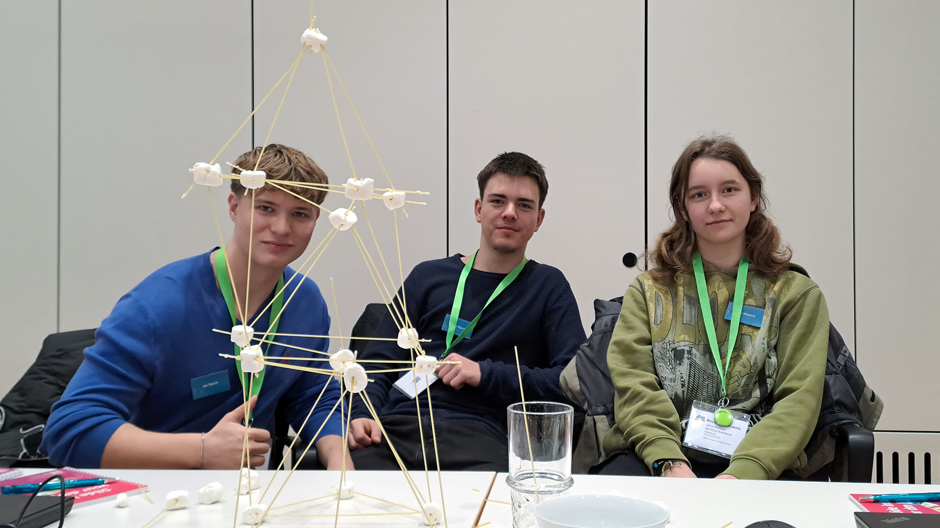 Im Laufe des Tages erhielten wir, zwischen kurzen Vorträgen, die uns über die IT-bezogenen Studiengänge an der Dualen Hochschule Karlsruhe und die sich daraus resultierenden Karrieremöglichkeiten informierten, immer wieder die Chance, mit spaßigen Spielen unsere Teamfähigkeit unter Beweis zu stellen, wie z. B. beim Bauen eines Turms mithilfe von rohen Spaghetti und Marshmallows; außerdem gab’s auch ein Quiz.